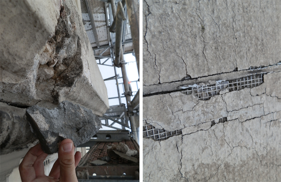 - Restitución de elementos ornamentales pétreos irreparables: copas ornamentales de coronamiento y pasamano de balaustrada.