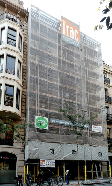 En esta obra iniciada en octubre y que todavía se halla en curso, TRAC ha procedido a la demolición de los balcones, construyéndolos de nuevo, y a diferentes actuaciones en fachadas y patios: