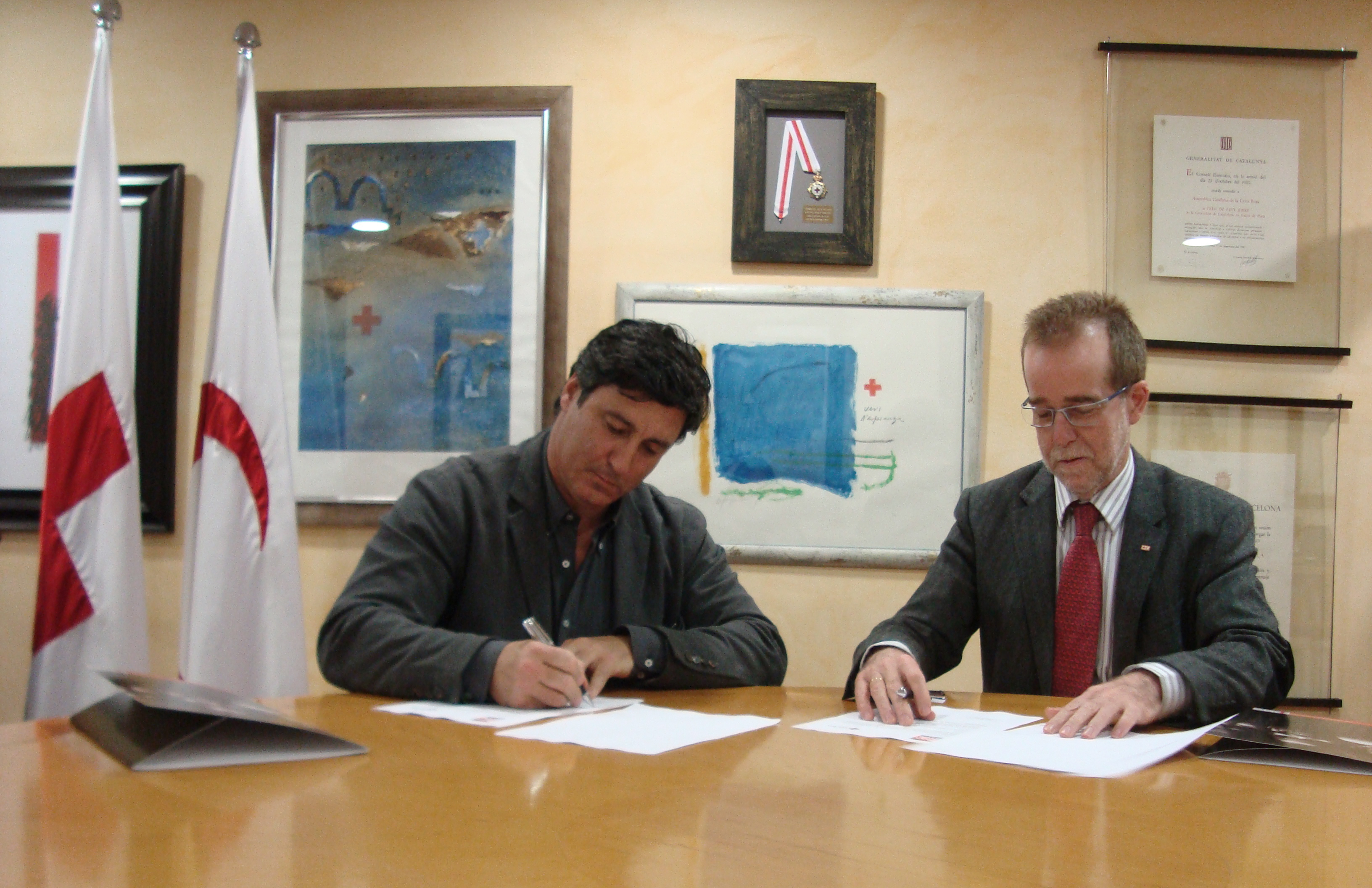 Firma del convenio de colaboración a cargo de Josep Marquès, presidente de Cruz Roja Cataluña, y Francesc Mañas, administrador de Trac Rehabilitació d'Edificis.